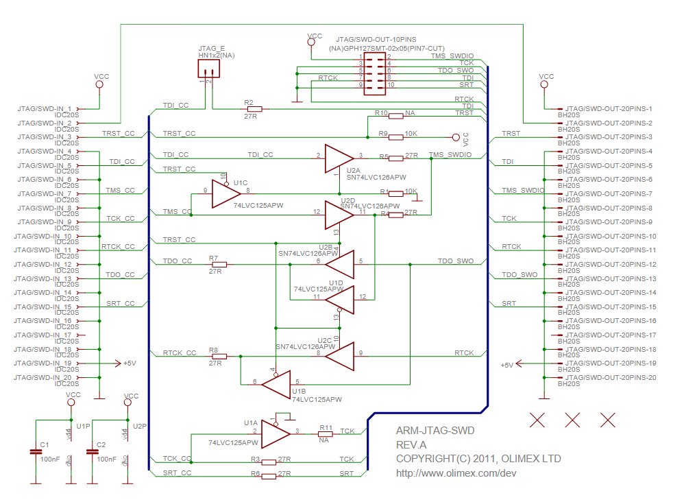 ■ARM-USB-OCD, ARM-USB-OCD-H, ARM-USB-TINY, ARM-USB-TINY-Hで使えるSWD(Serial Wire Debug)変換コネクタです。