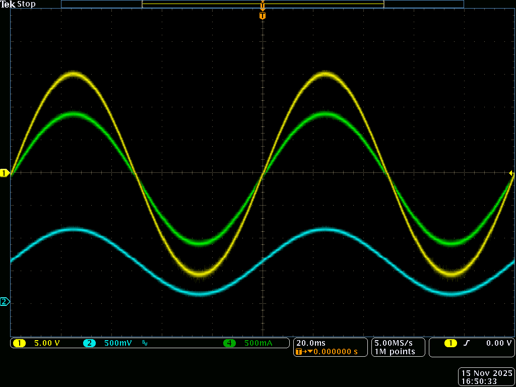 ■出力範囲は-15V〜+15V, 負荷電流は最大 1A(-1A)となっています(電源20V使用時)
