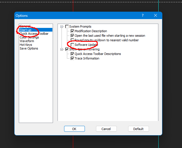 左のStart-upを選ぶ、右側のSoftware Updateがチェックされているのでチェックを外します。写真ではチェックを外した状態です。